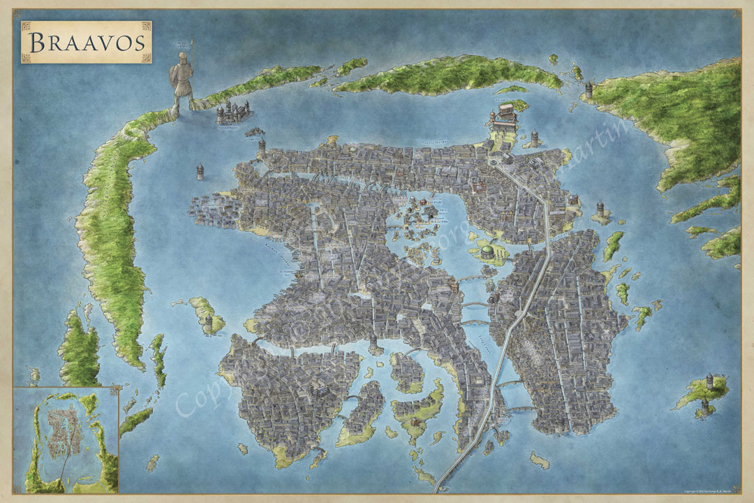 2) I’m attaching a map of Braavos and a map showing wear Braavos fits in the world of ASOIF.
